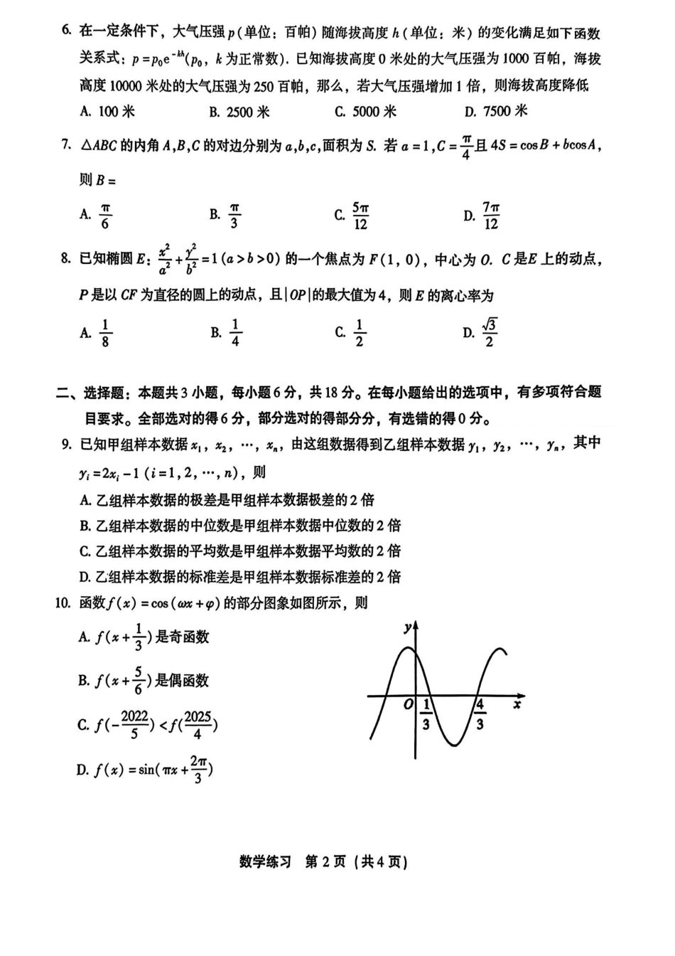【数学】2025届高中毕业班适应性练习卷.pdf_第2页