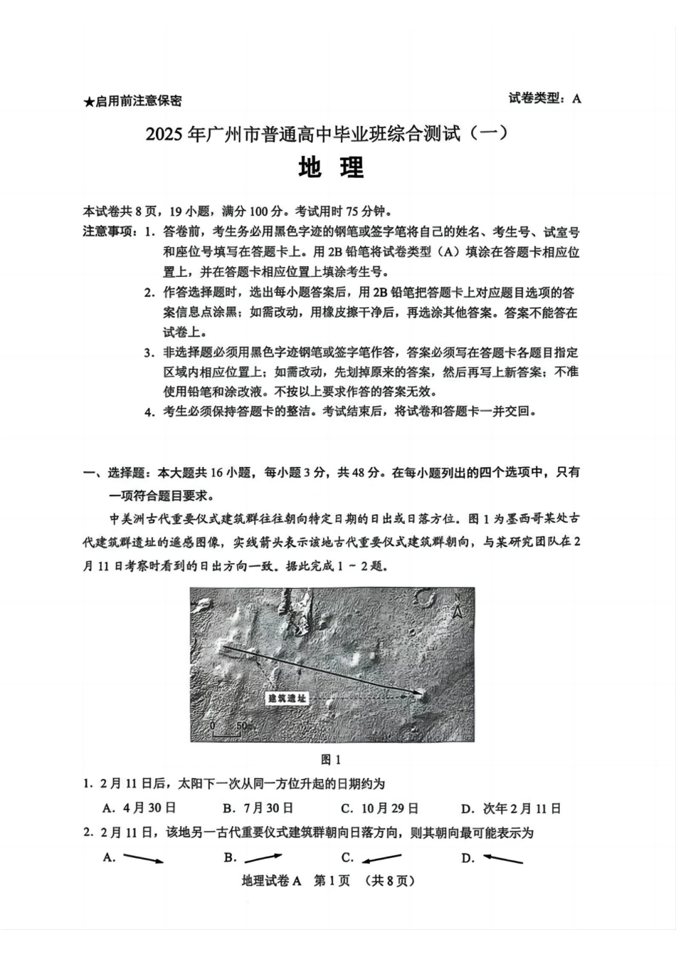 2025年广州市普通高中毕业班综合测试(一)地理.pdf_第1页