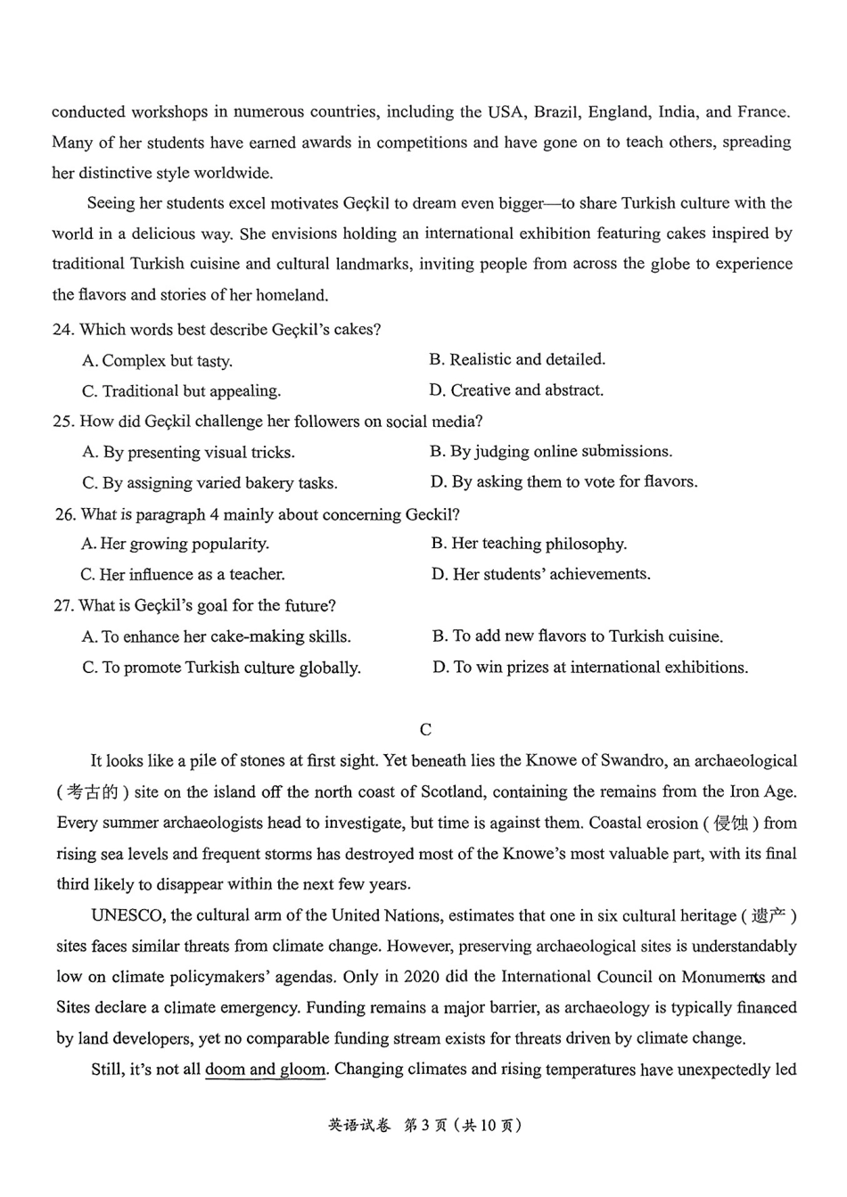 广东省2025届高三下学期3月综合能力测试(燕博园联考CAT)英语.pdf_第3页