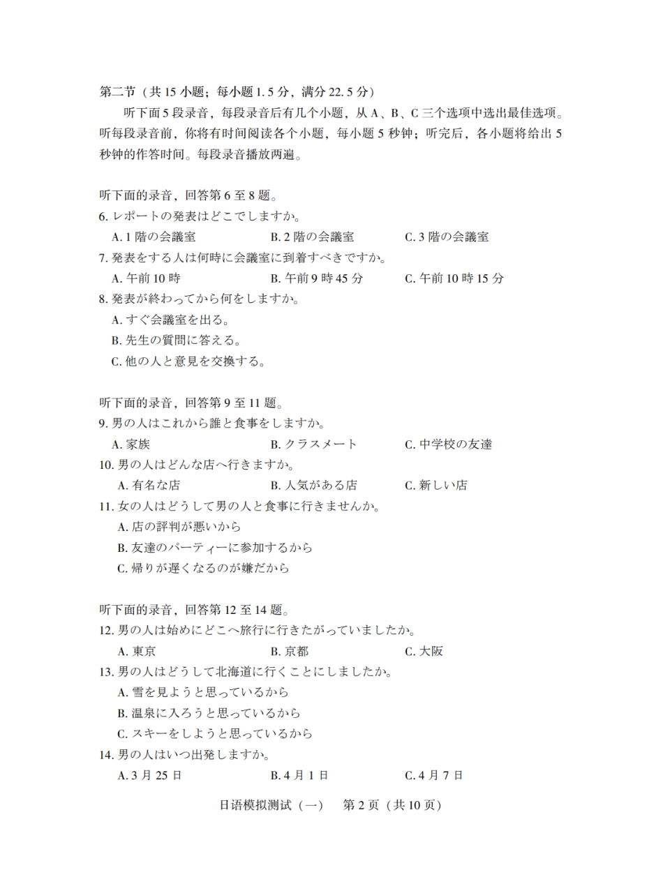 广东省2025年普通高等学校招生全国统一考试模拟测试(一)日语试题.pdf_第2页