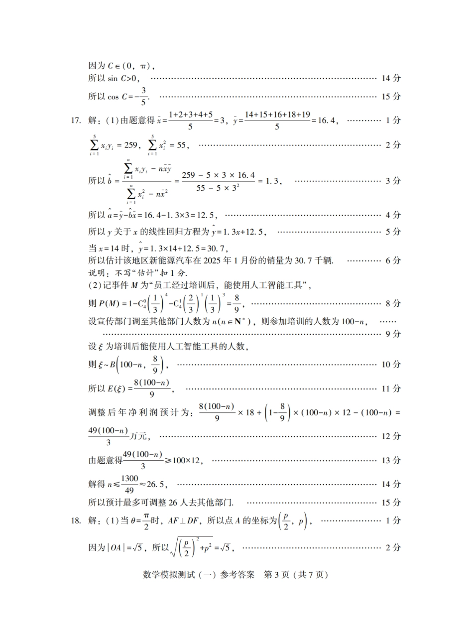 广东省2025年普通高等学校招生全国统一考试模拟测试(一)数学答案.pdf_第3页