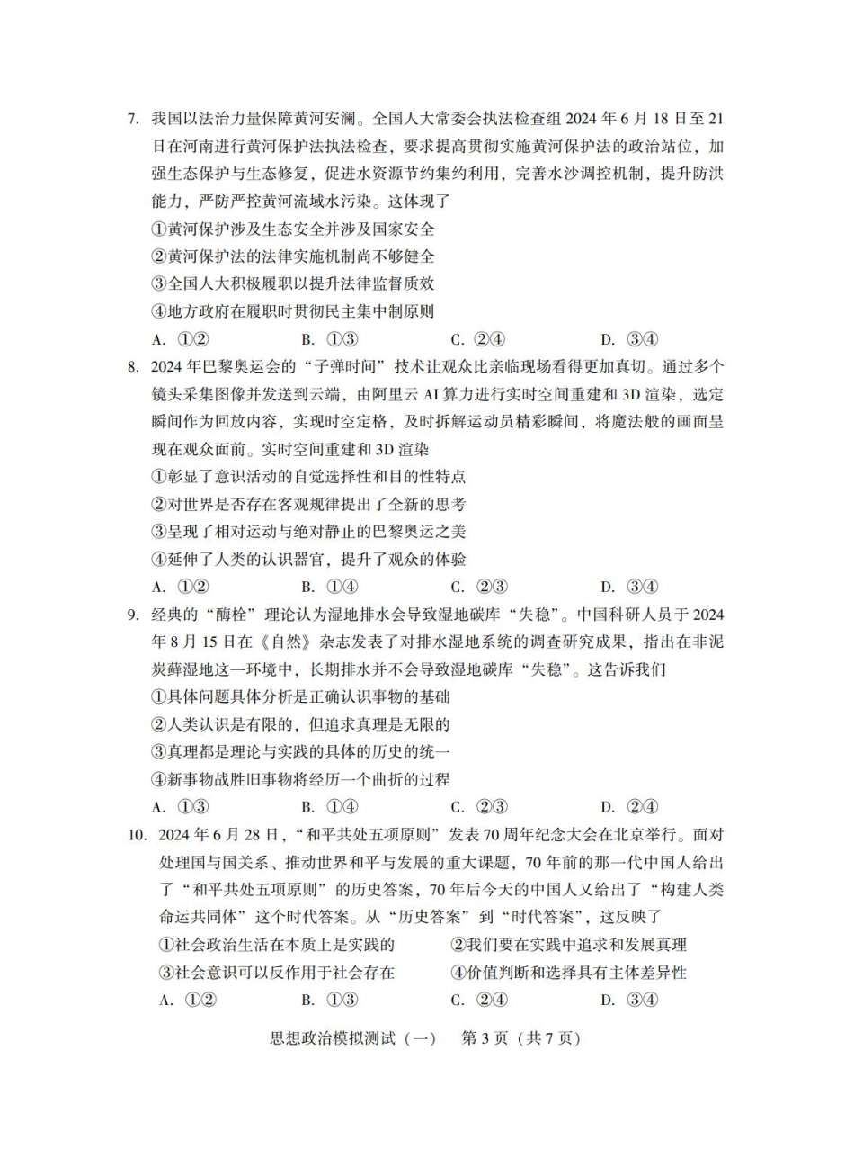 广东省2025年普通高等学校招生全国统一考试模拟测试(一)政治试题.pdf_第3页