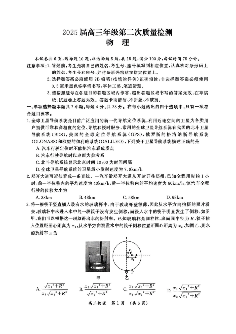 河南三市2025届高三年级第二次质量检测物理试题.pdf_第2页