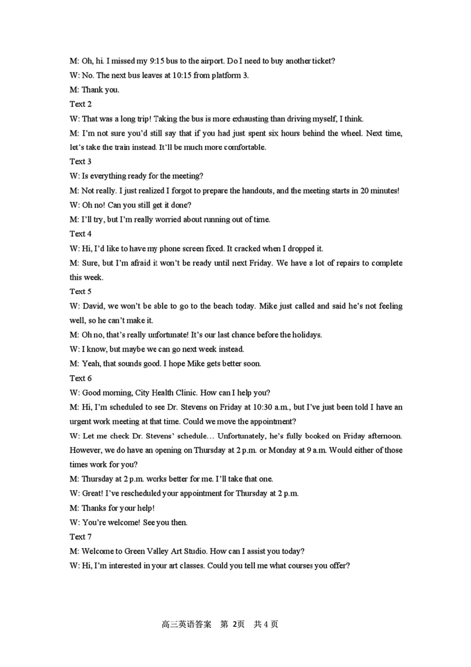 河南省(驻马店、漯河、南阳、信阳、三门峡)五市2025年高三第一次联考英语答案.pdf_第2页