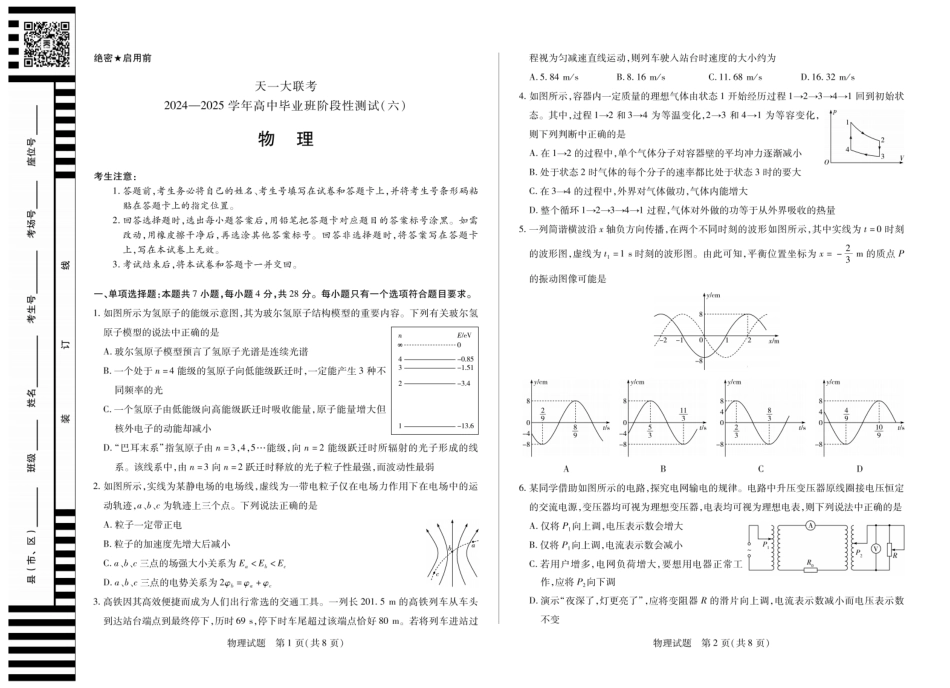 河南省天一大联考2024-2025学年高中毕业班阶段性测试(六)物理试题.pdf