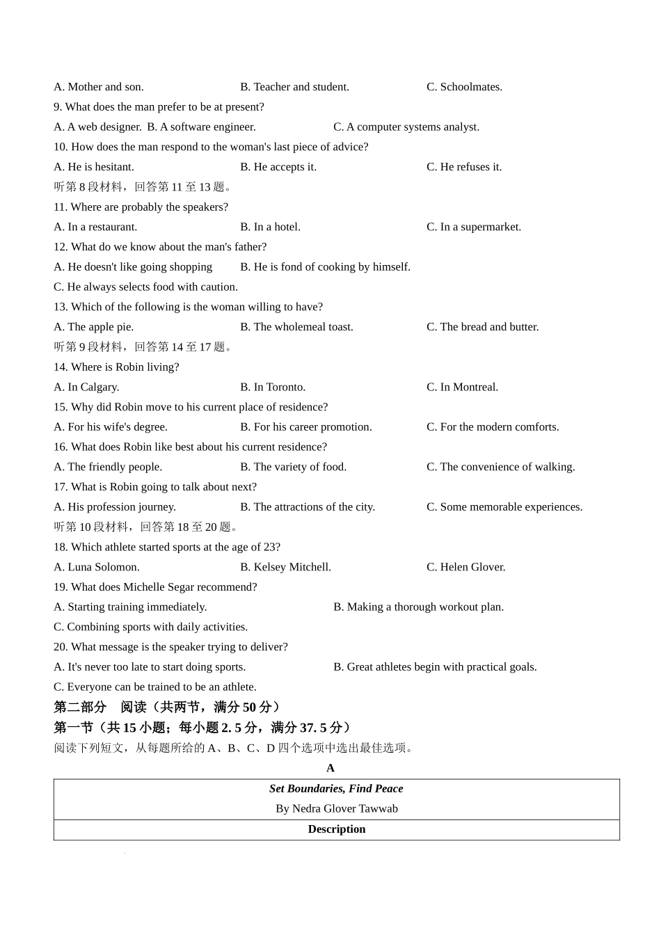 试卷类型:A潍坊市高考模拟考试英语2025.3注意事项:1.答题前,考生务必将自己的姓名、考生号等填写在答题卡和试卷指定位置上。2.回答选择题时,选出每小题答案后,用铅笔把答题卡上对应题目的答案标号涂黑。如需...