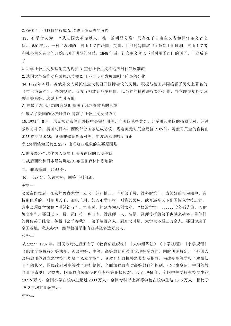 重庆市第一中学校2024-2025学年高三下学期3月适应性月考历史试题(含答案).docx_第3页
