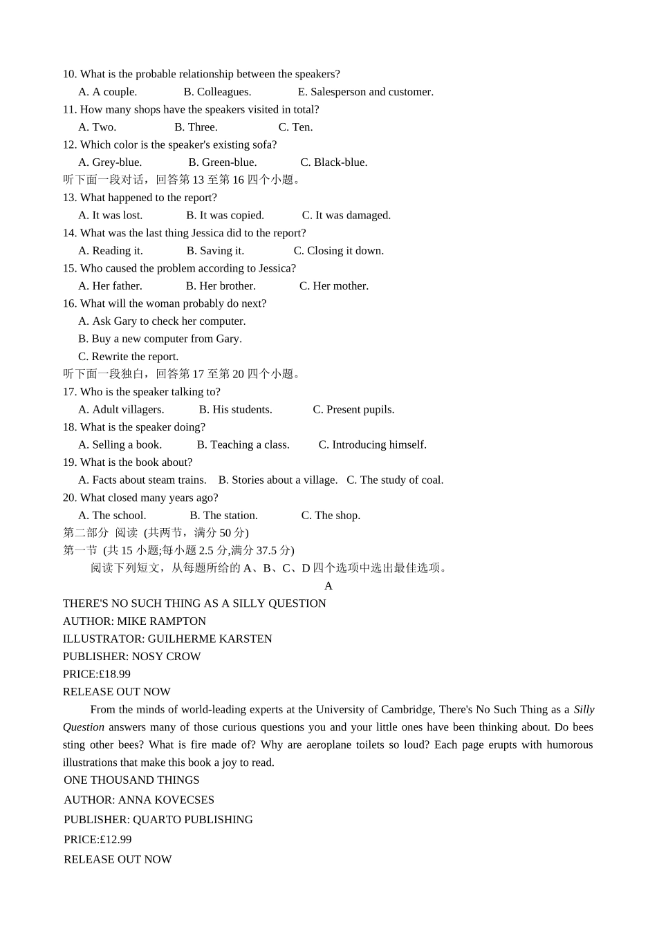 2025届重庆一中高三3月月考英语试题卷注意事项:1.答卷前,考生务必将自己的姓名、准考证号码填写在答题卡上。2.作答时,务必将答案写在答题卡上。写在本试卷及草稿纸上无效。3.考试结束后,将答题卡交回。第一部...
