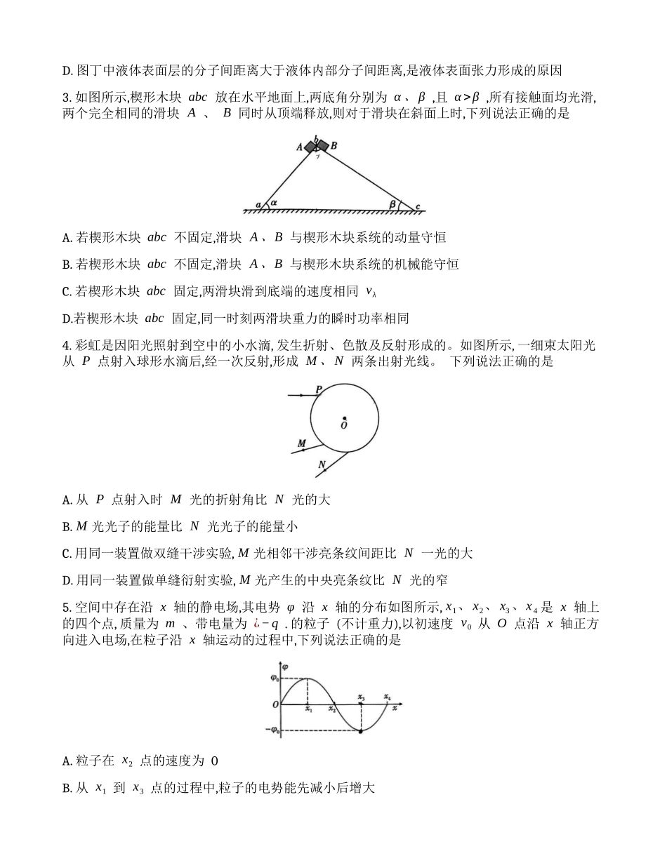 重庆市第一中学校2024-2025学年高三下学期3月月考物理试题.docx_第2页