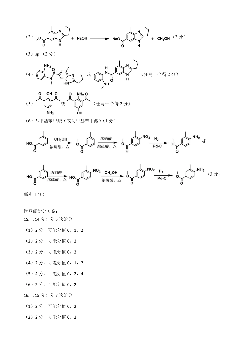 石家庄市2025届普通高中毕业年级教学质量检测(二)化学参考答案及评分标准.pdf_第3页