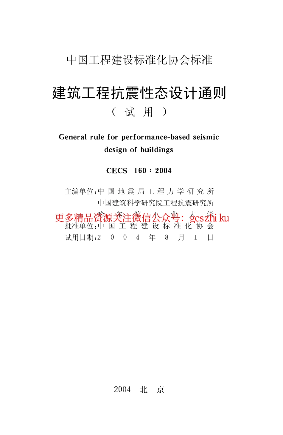 标准规范下载.CECS160-2004 建筑工程抗震性态设计通则.pdf_第1页
