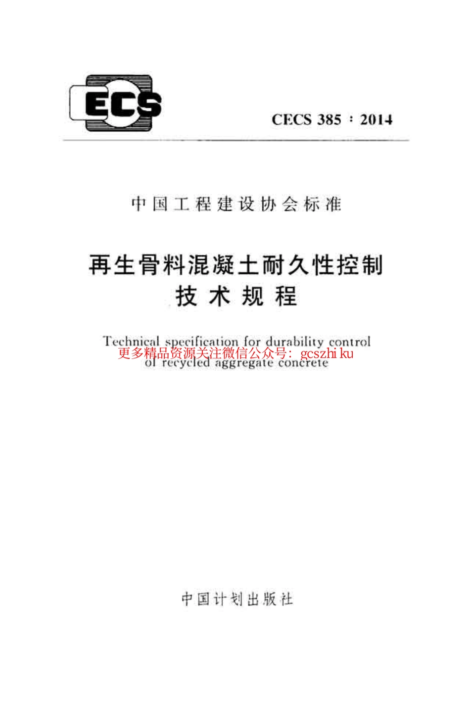 标准规范下载.CECS385-2014 再生骨料混凝土耐久性控制技术规程.pdf