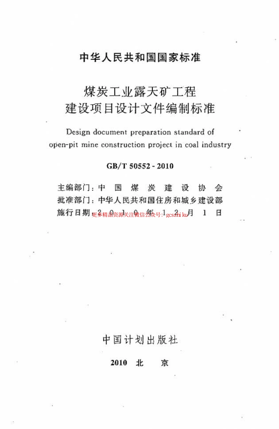 标准规范下载.GBT50552-2010 煤炭工业露天矿工程建设项目设计文件编制标准.pdf_第1页