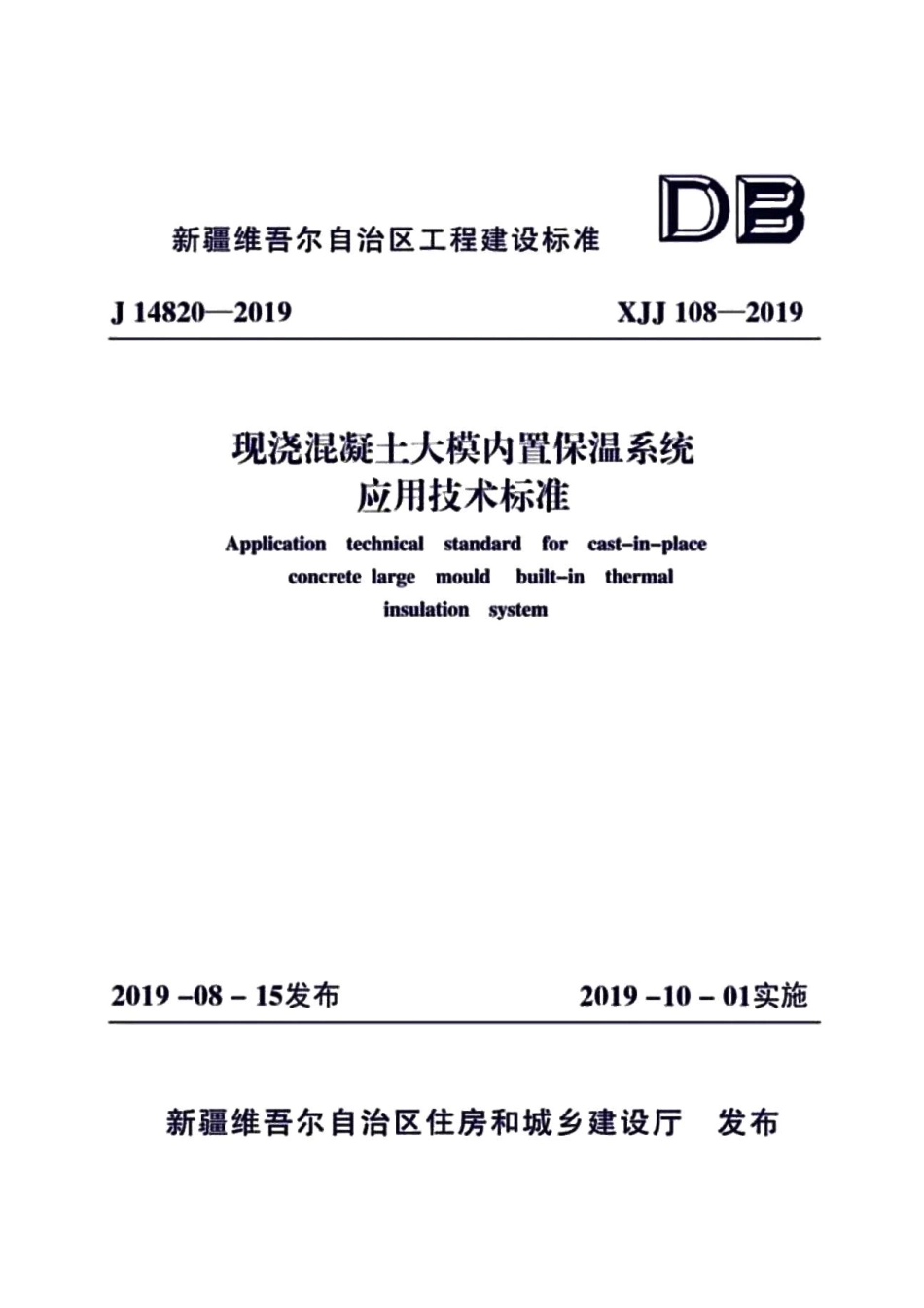 XJJ108-2019 现浇混凝土大模内置保温系统应用技术标准.pdf_第1页