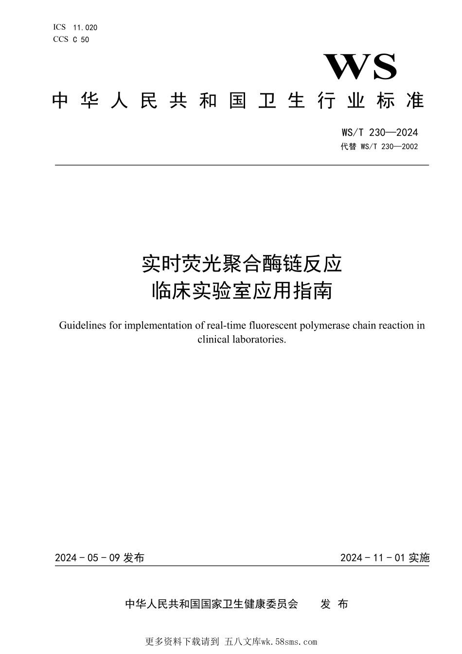 WST230—2024实时荧光聚合酶链反应临床实验室应用指南(代替WST 230—2002).pdf_第1页