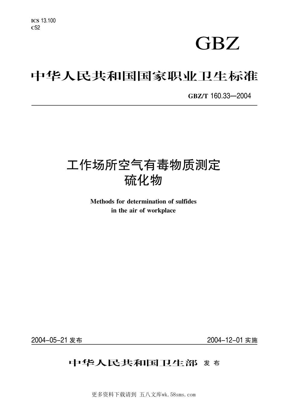 GBZT160.33-2004工作场所空气有毒物质测定 硫化物.pdf