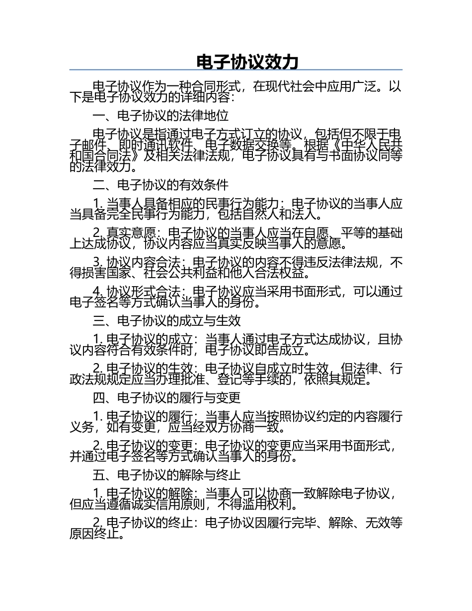 电子协议效力‌电子协议作为一种合同形式,在现代社会中应用广泛。以下是电子协议效力的详细内容:一、电子协议的法律地位电子协议是指通过电子方式订立的协议,包括但不限于电子邮件、即时通讯软件、电子数据交...