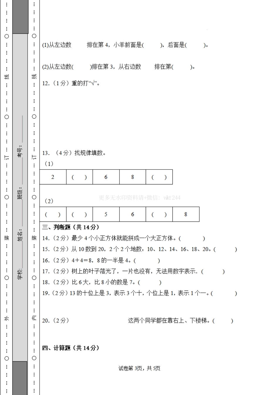 数学(基础卷01)-2024-2025 学年一年级数学上学期期末全真模拟(青岛版·2024)试题.pdf_第3页