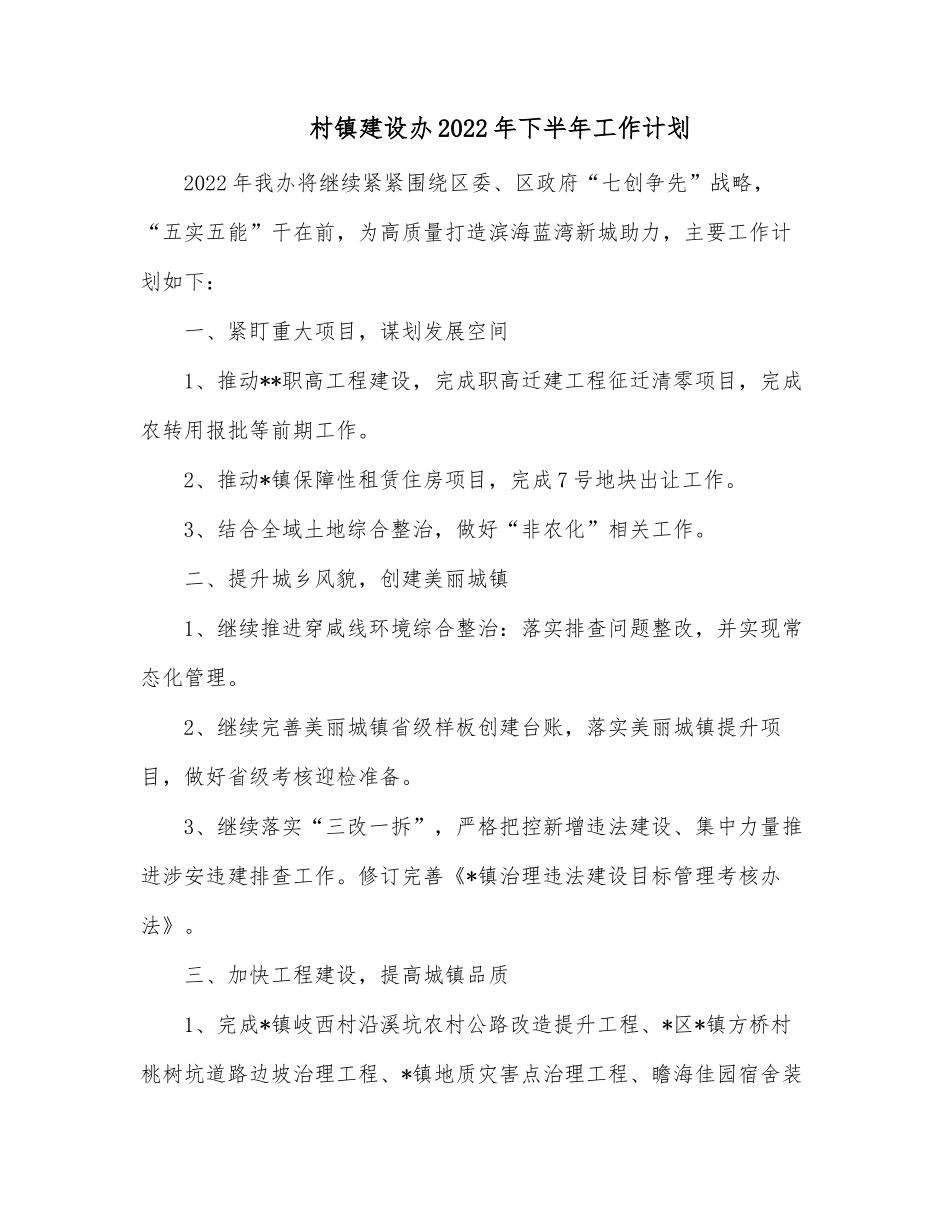 村镇建设办2022年下半年工作计划.docx