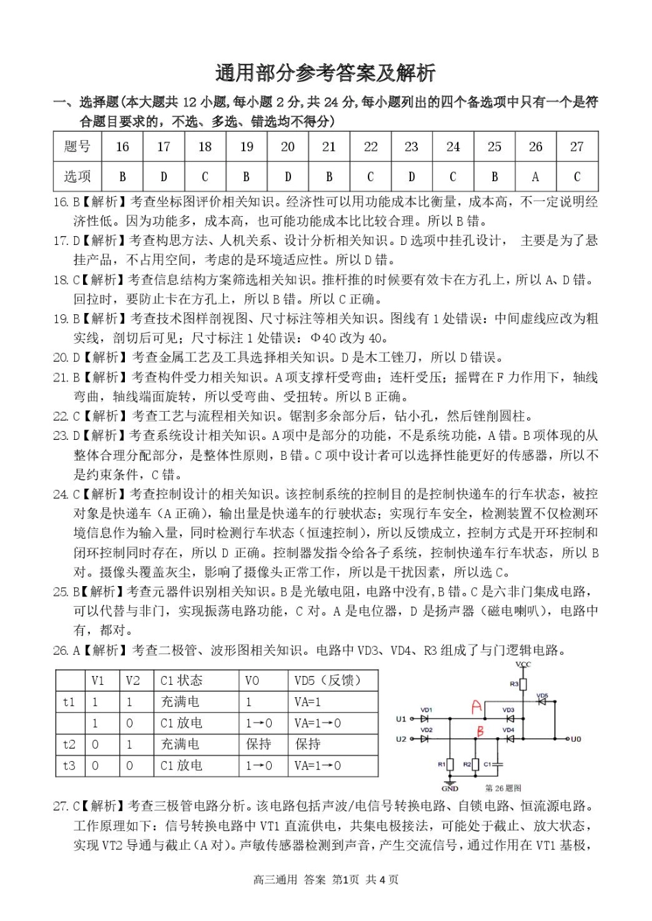 2025届浙江省北斗星盟高三下学期三模技术通用答案.pdf_第1页
