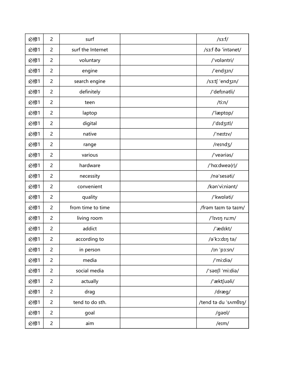 课本单元英文中文音标1senior1secondary1stressful1challenging1differ1previous1dynamic1campus1schedule1expectation1confidence1competence1chapter1allinall1apartment1am1shift1pressure1leisure1recover1in...