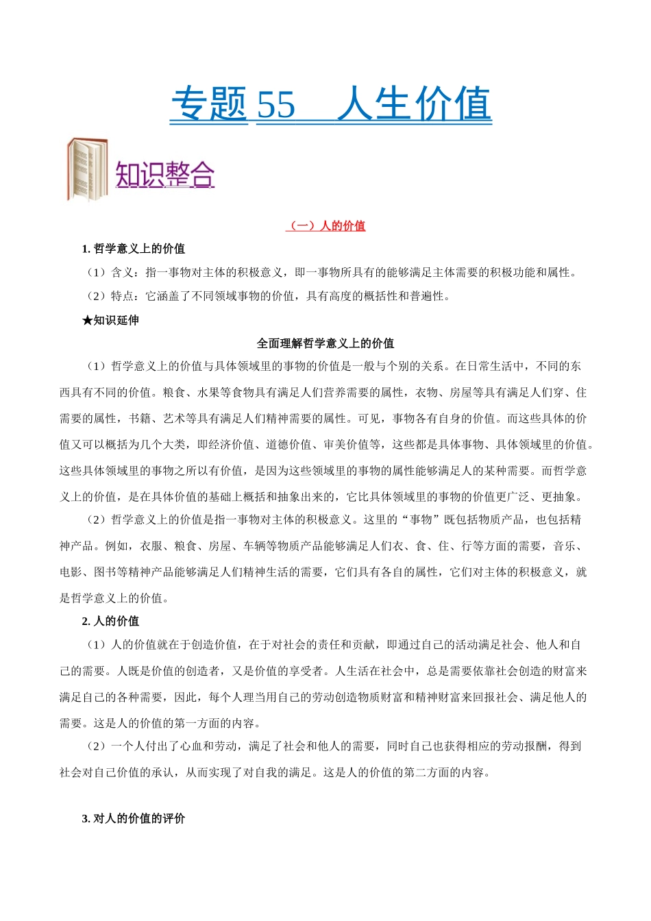 【高考政治考点专题】考点55 人生价值.doc_第1页