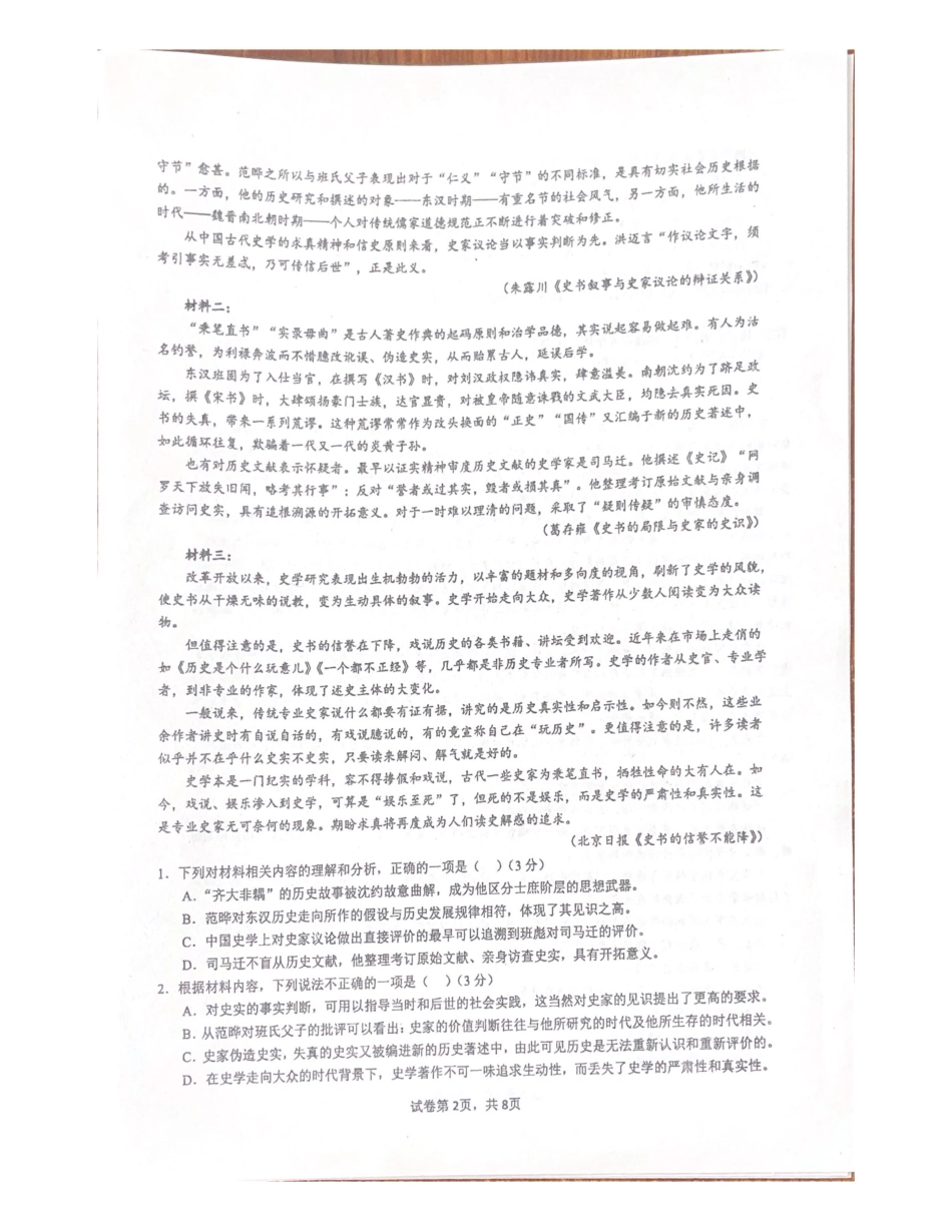 2023-2024学年第二学期高一年级期中学业质量监测语文试题.pdf_第2页