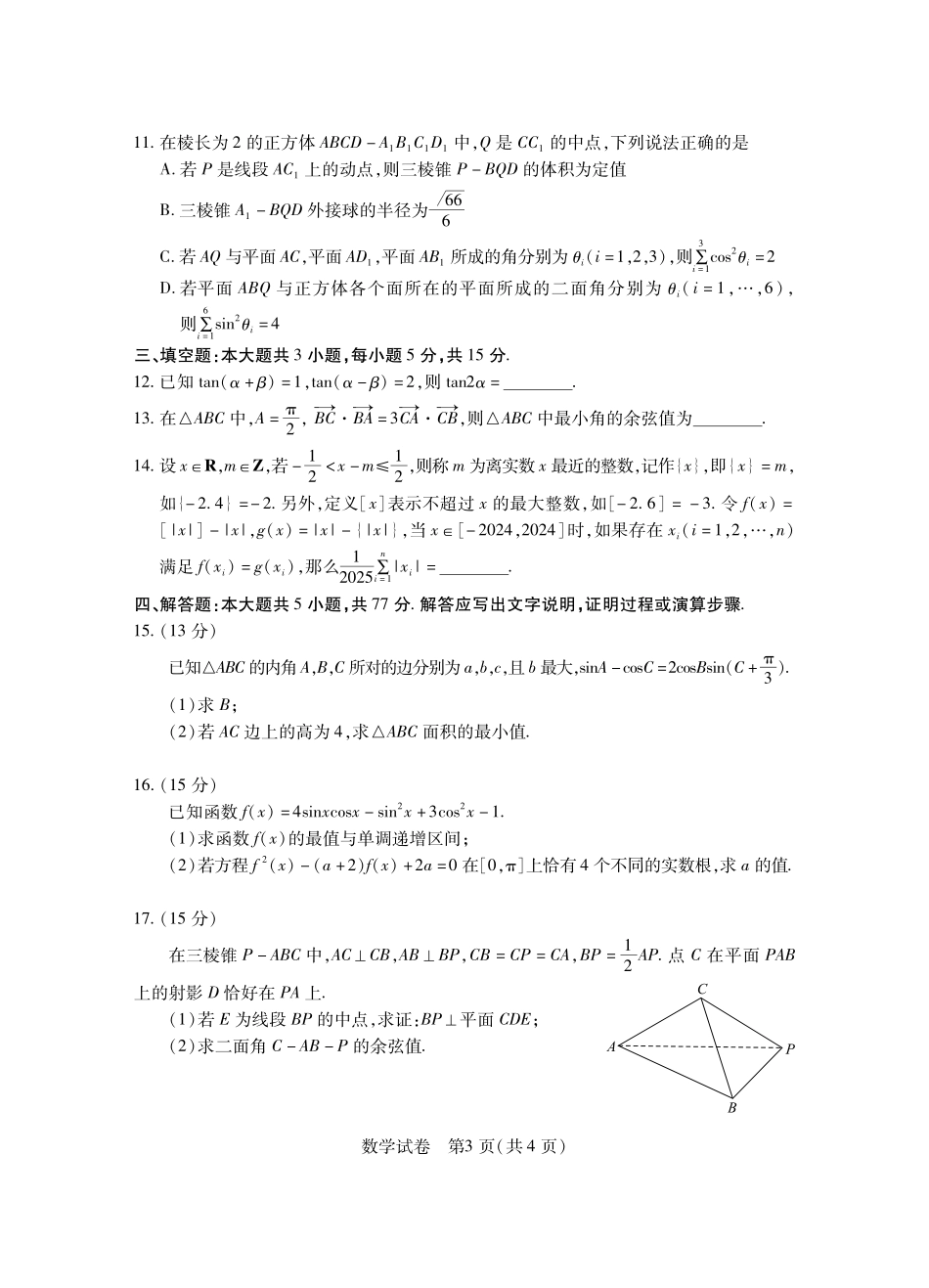 湖北省五市州2024年高一下学期7月期末考试数学试题.pdf_第3页