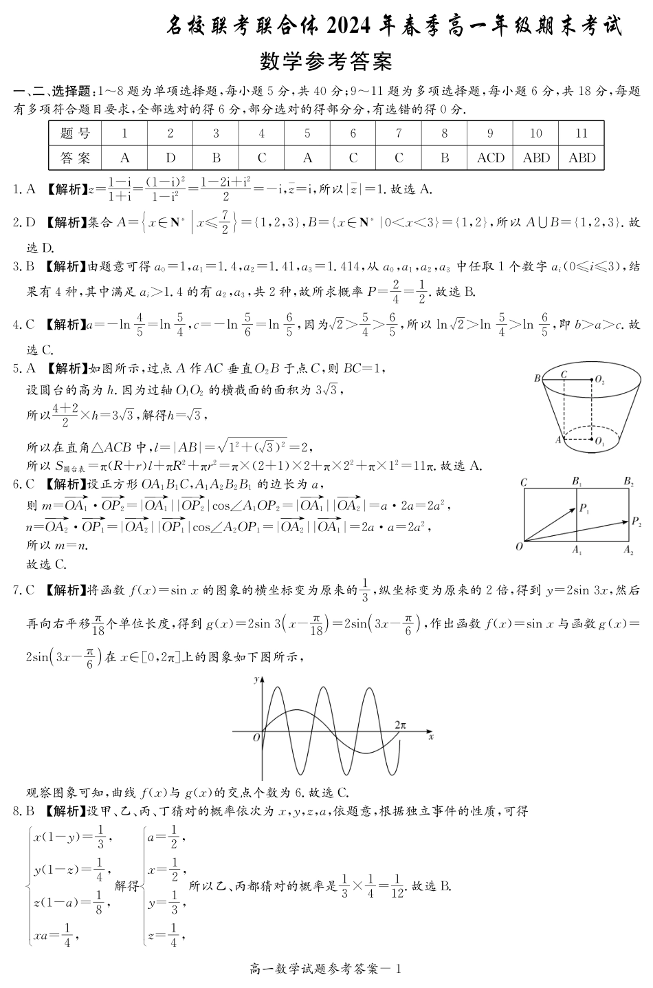 湖南省名校联考联合体2024年高一下学期期末考试数学答案.pdf_第1页