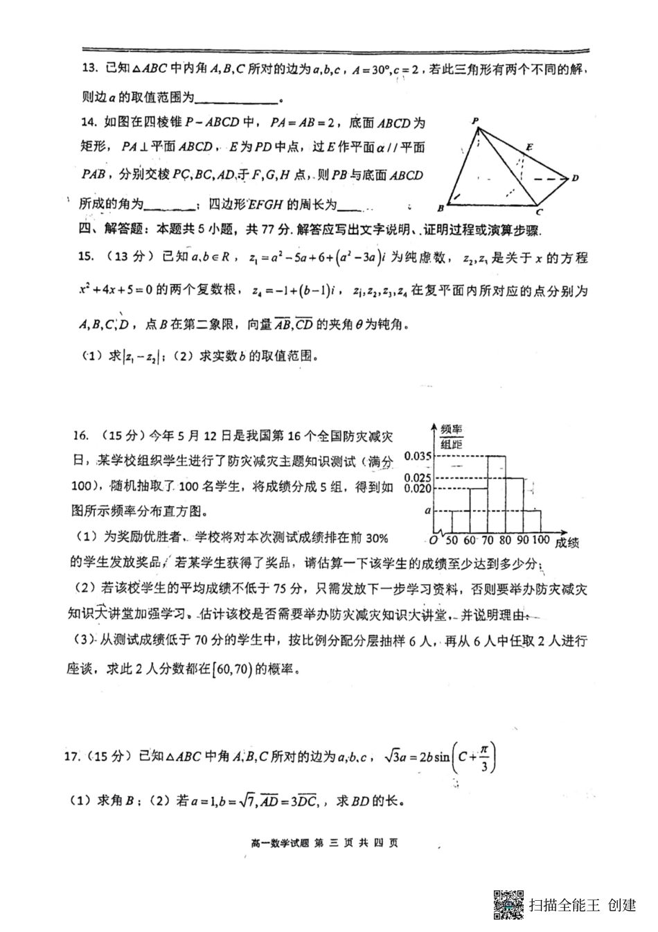 山东省泰安第一中学2023-2024学年高一下学期6月月考数学试题.pdf_第3页