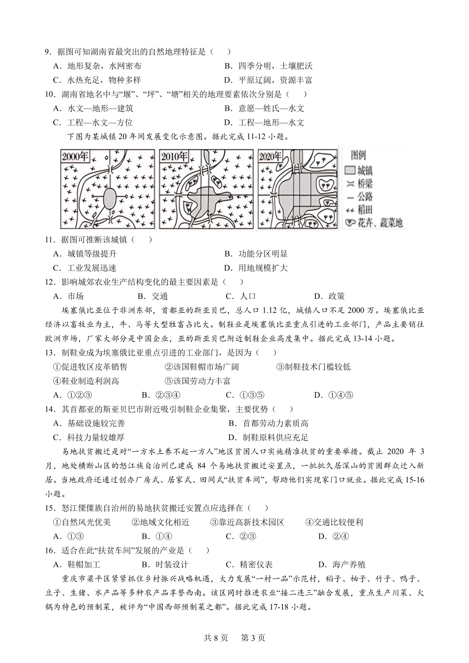 成都市第七中学2023-2024学年高一下学期6月月考地理试题.pdf_第3页