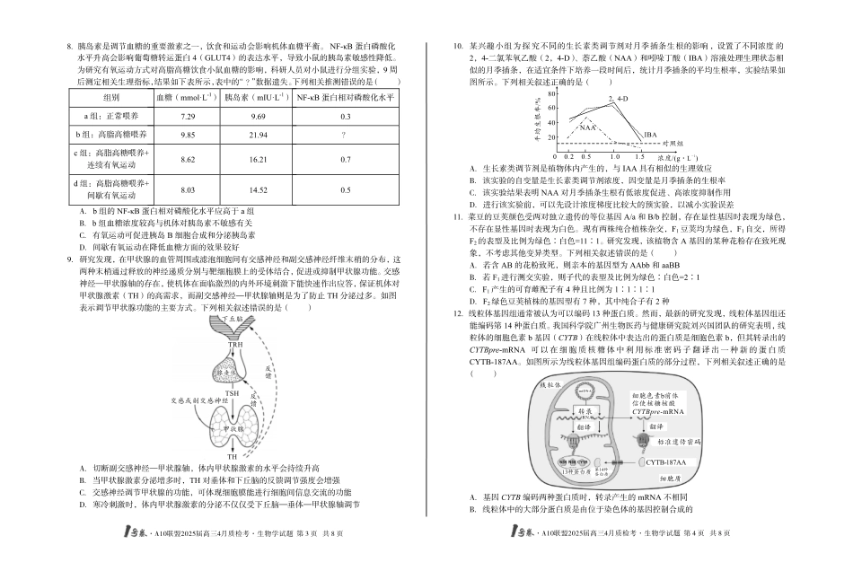 安徽省1号卷A10联盟2025届高三4月质检考生物学.pdf