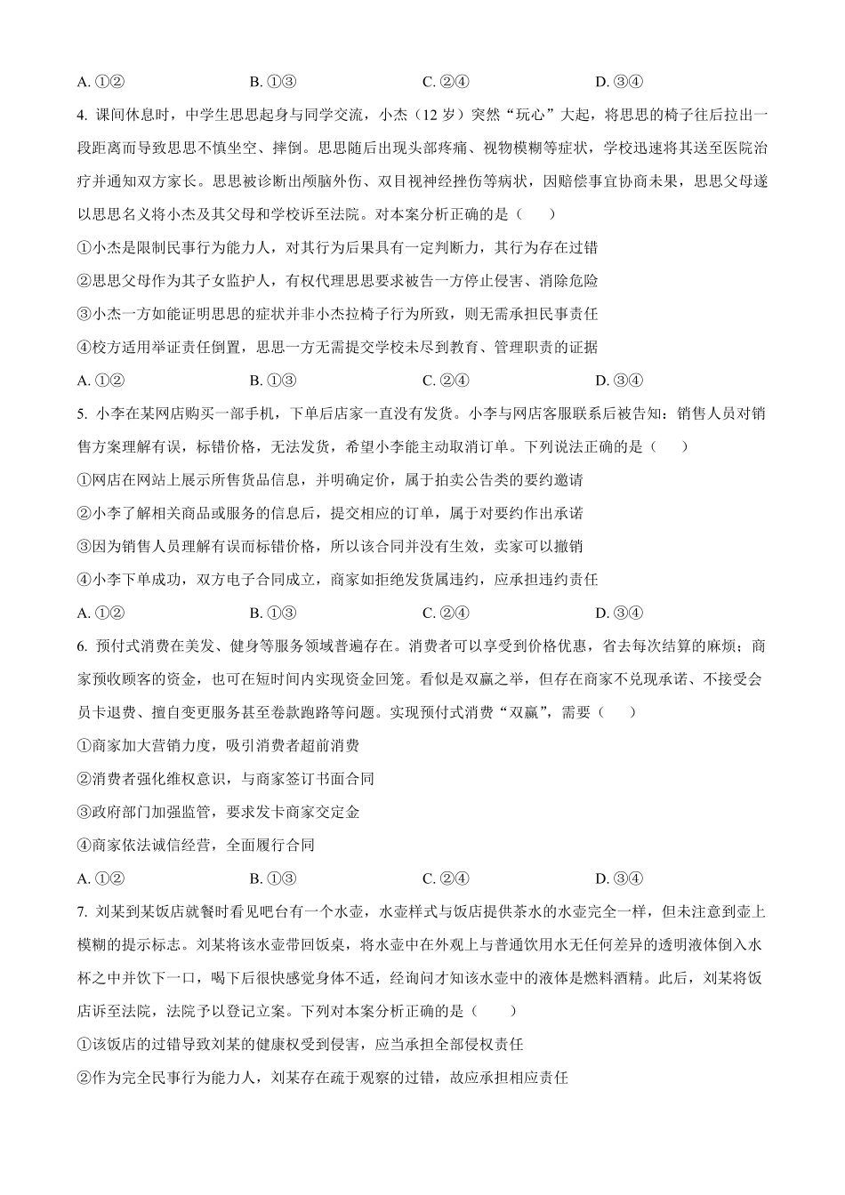 湖南省长沙市湖南师范大学附属中学2024-2025学年高二下学期4月期中考试政治试题(含答案).pdf_第2页