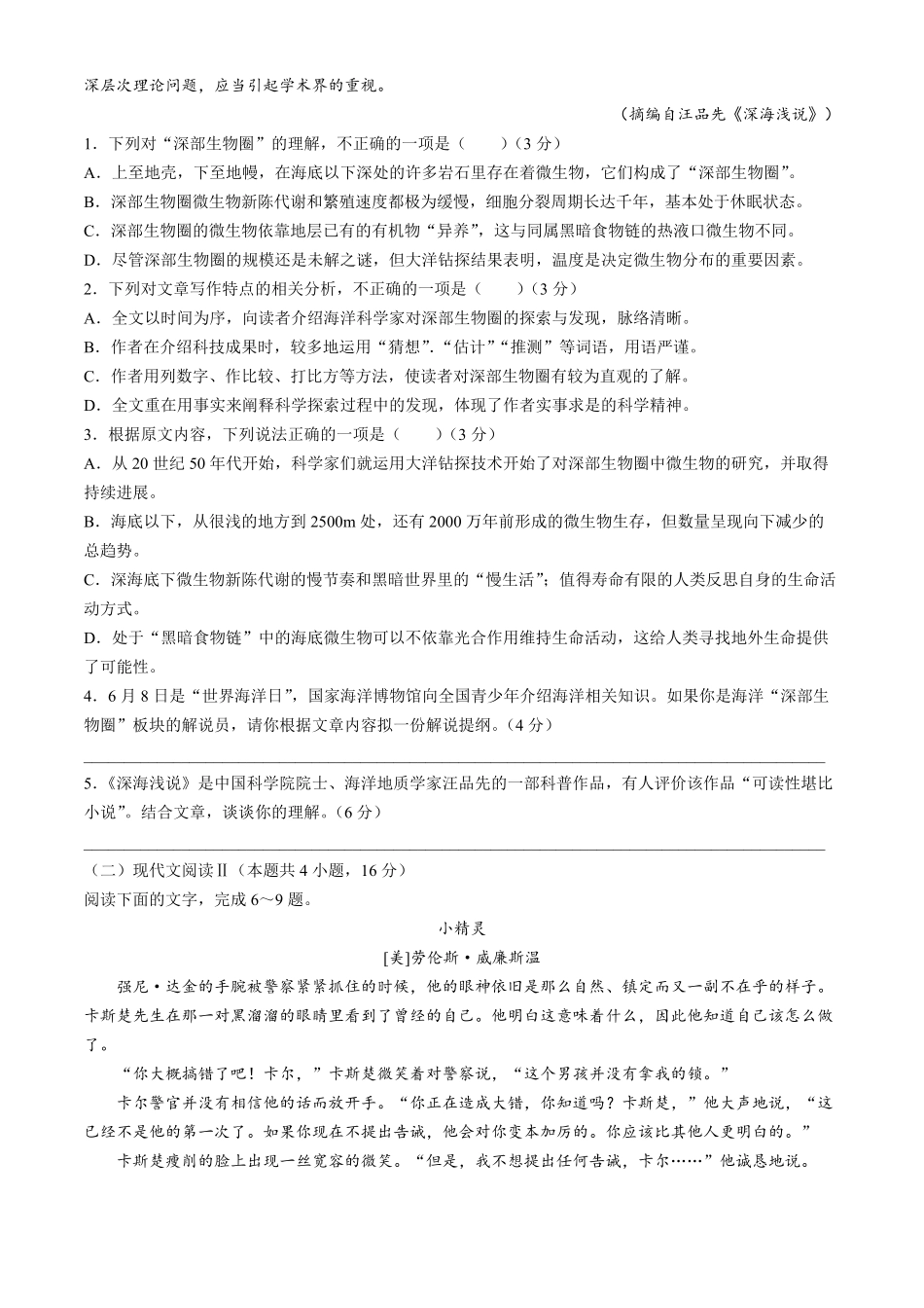 陕西省咸阳市普通高中2023-2024学年高二下学期7月期末质量检测考试语文试卷+答案.pdf_第3页