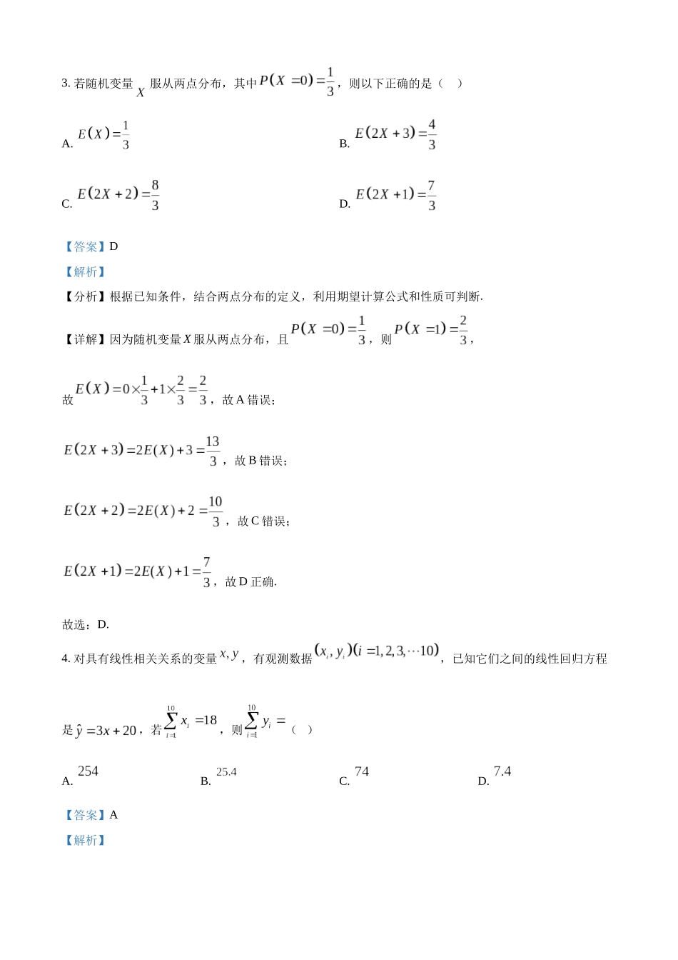 广西百色市2022-2023学年高二下学期期末教学质量调研数学试题(教师版).docx_第3页