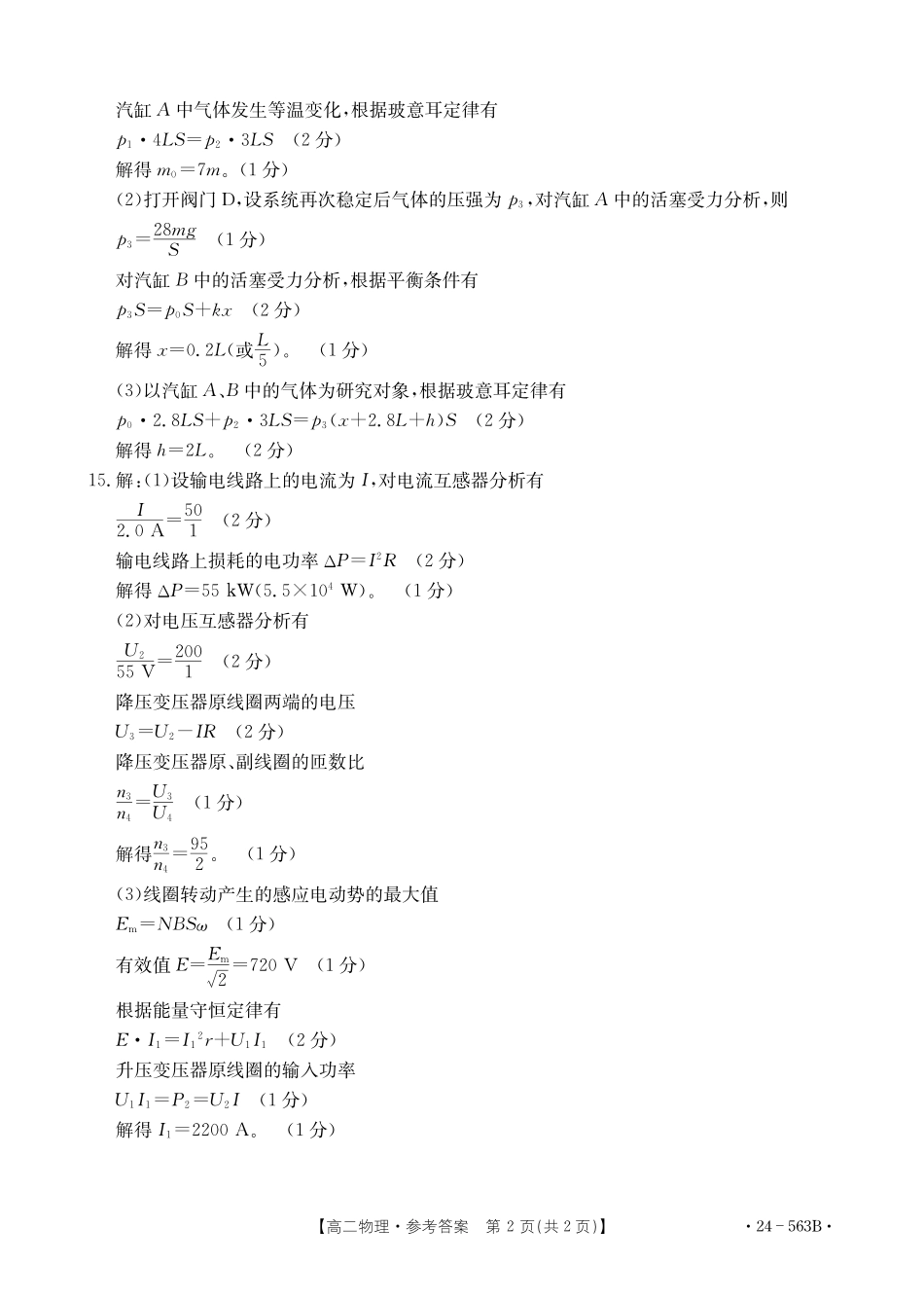 【新课标 I (湖北)卷】【高一】湖北省十堰市2023-2024学年高二下学期6月期末调研考试物理试卷答案.pdf_第2页