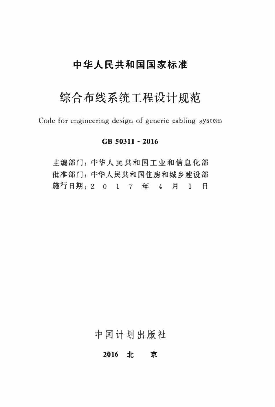 GB50311-2016 综合布线系统工程设计规范高清版.pdf