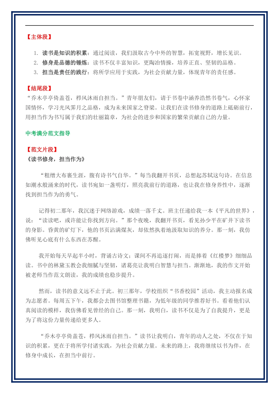 【考前抢分模板】备战2025年中考作文抢分模板与提分技巧记叙类作文二十大主题押题高分结构搭建(第一辑)开头段+主体段+结尾段+迁移+作文背考导语中考作文是学生语文素养的综合体现,既考查语言表达能力,也检验...