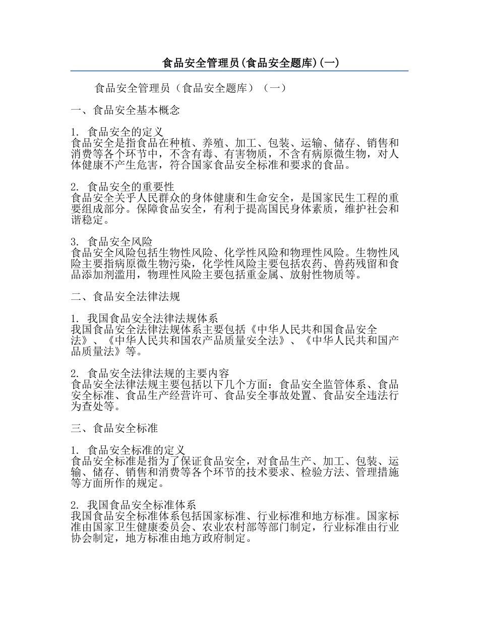 食品安全管理员(食品安全题库)(一).docx_第1页
