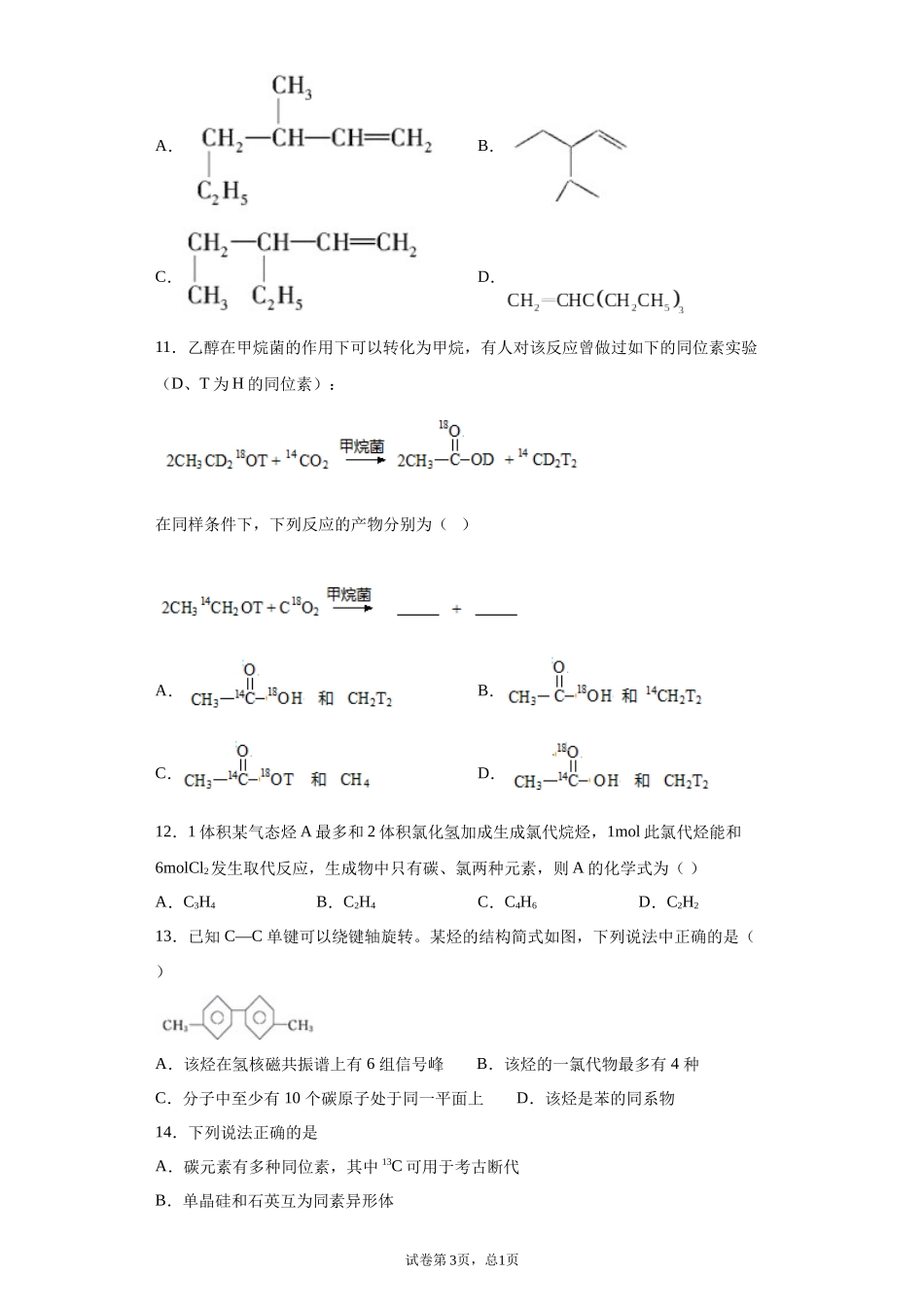 2020_2021学年高二选择性必修三(人教版2019)期末复习培优与提升(三)一、单选题1.化学与社会、生产、生活密切相关。下列说法正确的是A.碳纤维是一种新开发的材料,它属于合成有机高分子化合物B.对“地沟油...