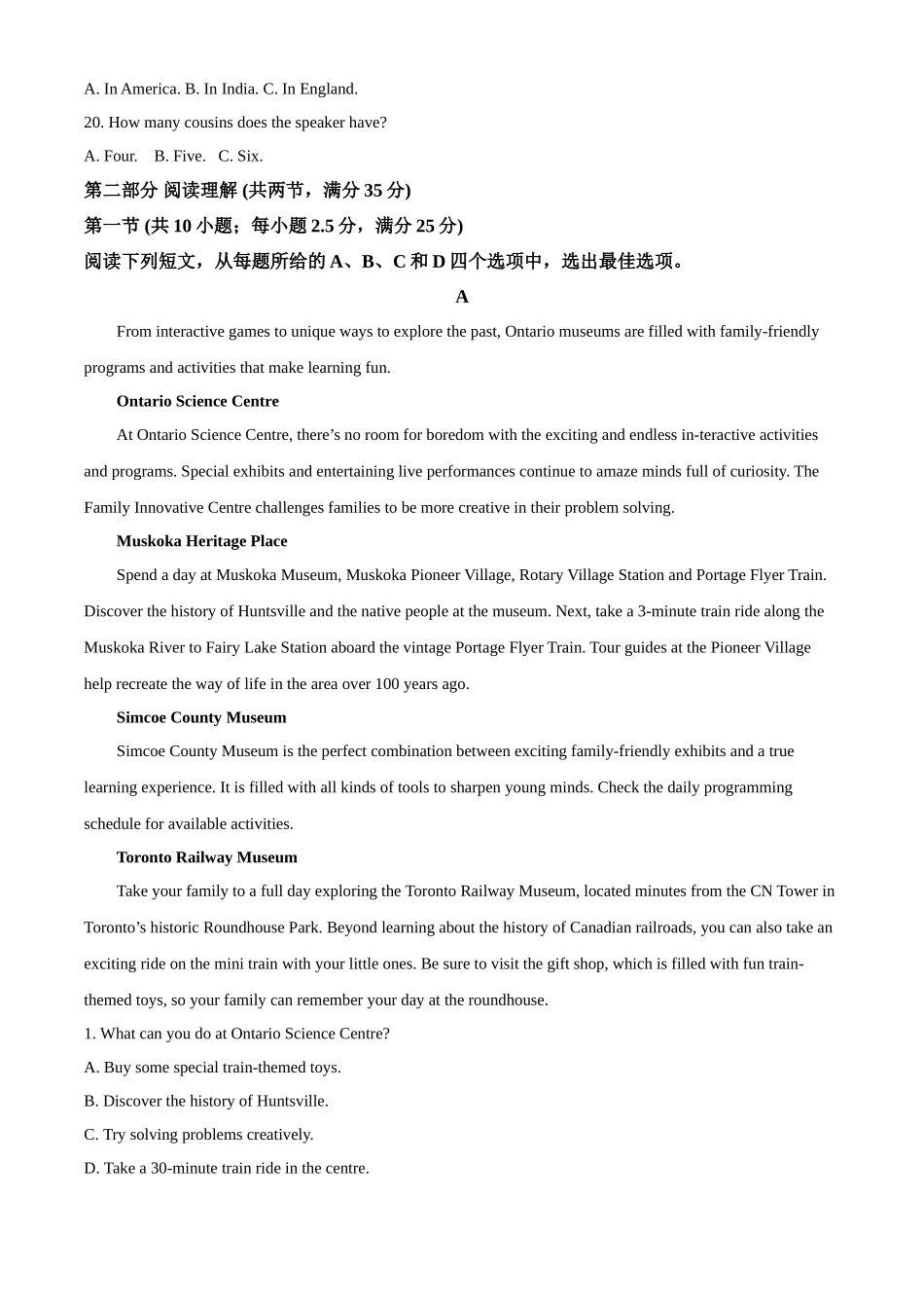 菏泽市山师附中2022~2023学年度高二上学期开学考试英语试题第一部分听力第一节(共5小题;每小题1.5分,满分7.5分)听下面5段对话。每段对话后有一个小题,从题中所给的A、B、C三个选项中选出最佳选项,并标在试卷...