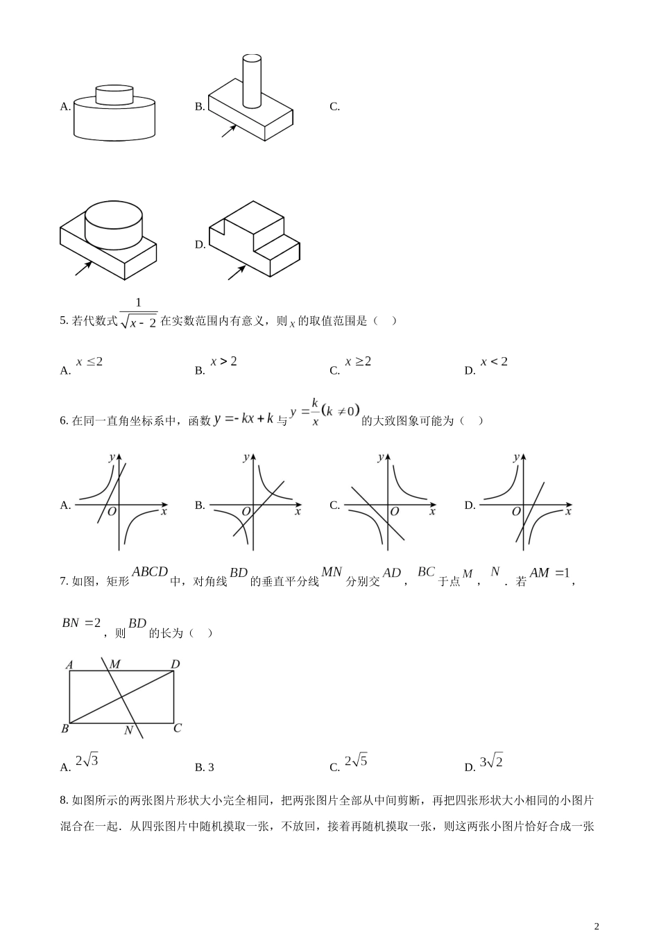 精品解析:2023年内蒙古呼和浩特市中考数学真题(原卷版).docx_第2页