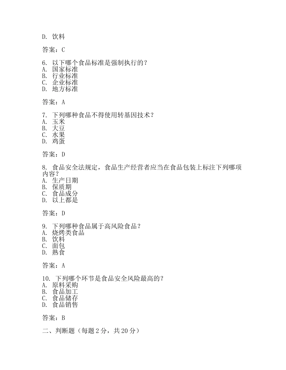 食品安全管理员试卷及答案(范文).docx_第2页
