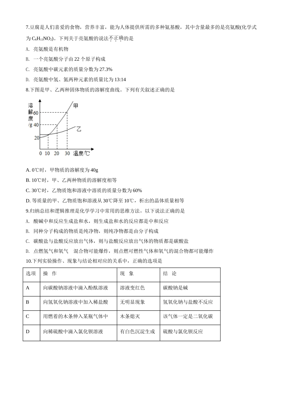 2018年湖南省张家界市中考化学试题(word版,含解析).doc_第2页
