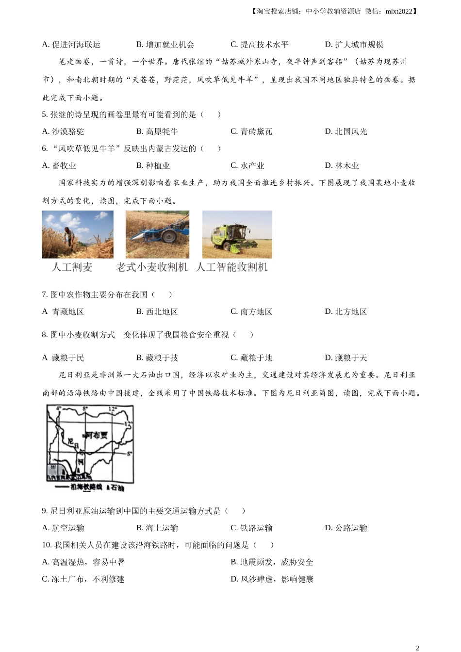 精品解析:2024年青海省中考地理试题(原卷版).docx_第2页