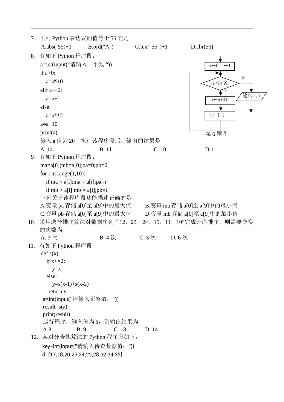 浙江省丽水市2021-2022学年高二上学期普通高中教学质量监控(期末)信息技术试题.doc