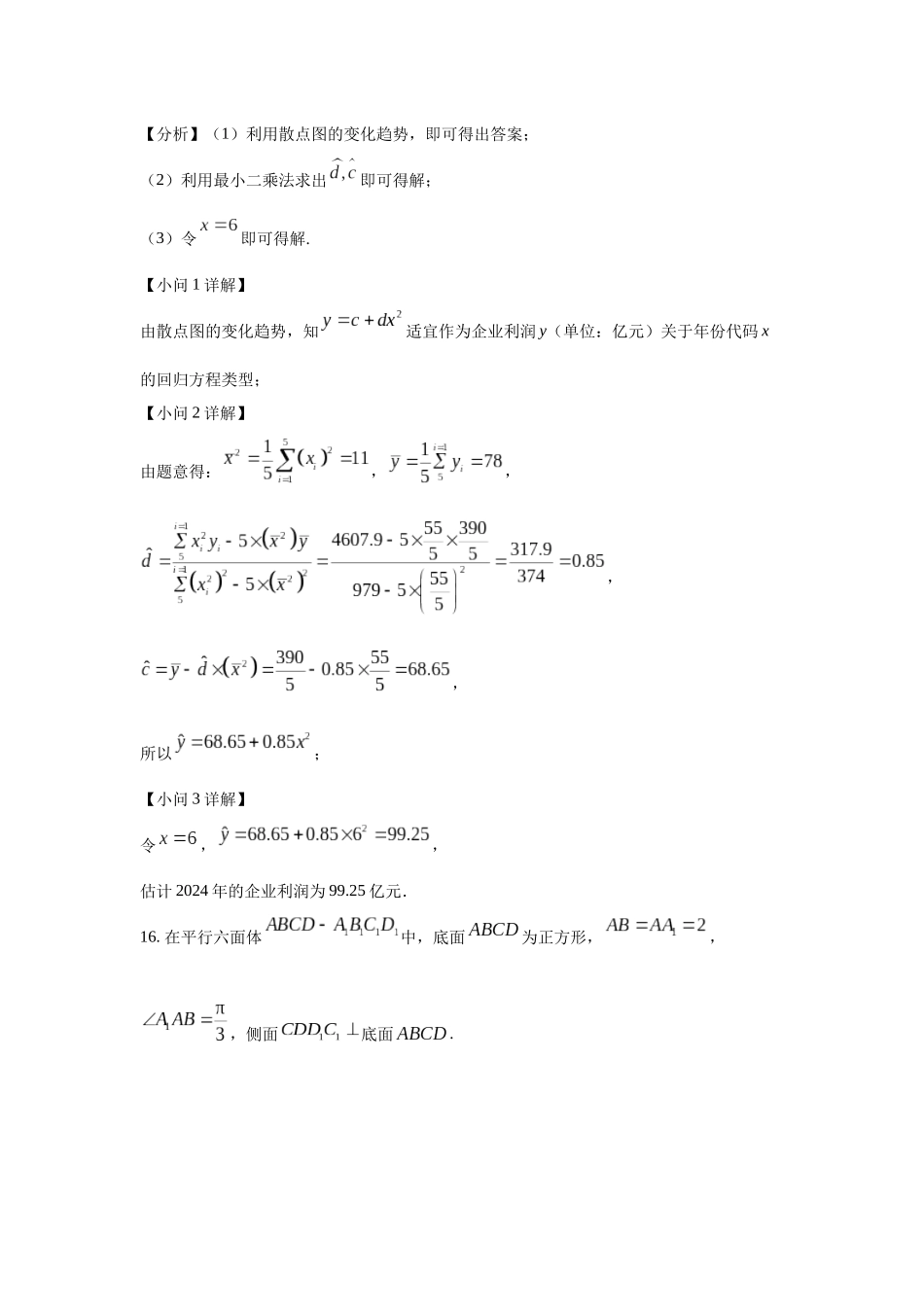 高三数学大题规范训练(24)15.近年来,我国众多新能源汽车制造企业迅速崛起.某企业着力推进技术革新,利润稳步提高.统计该企业2019年至2023年的利润(单位:亿元),得到如图所示的散点图.其中2019年至2023年...