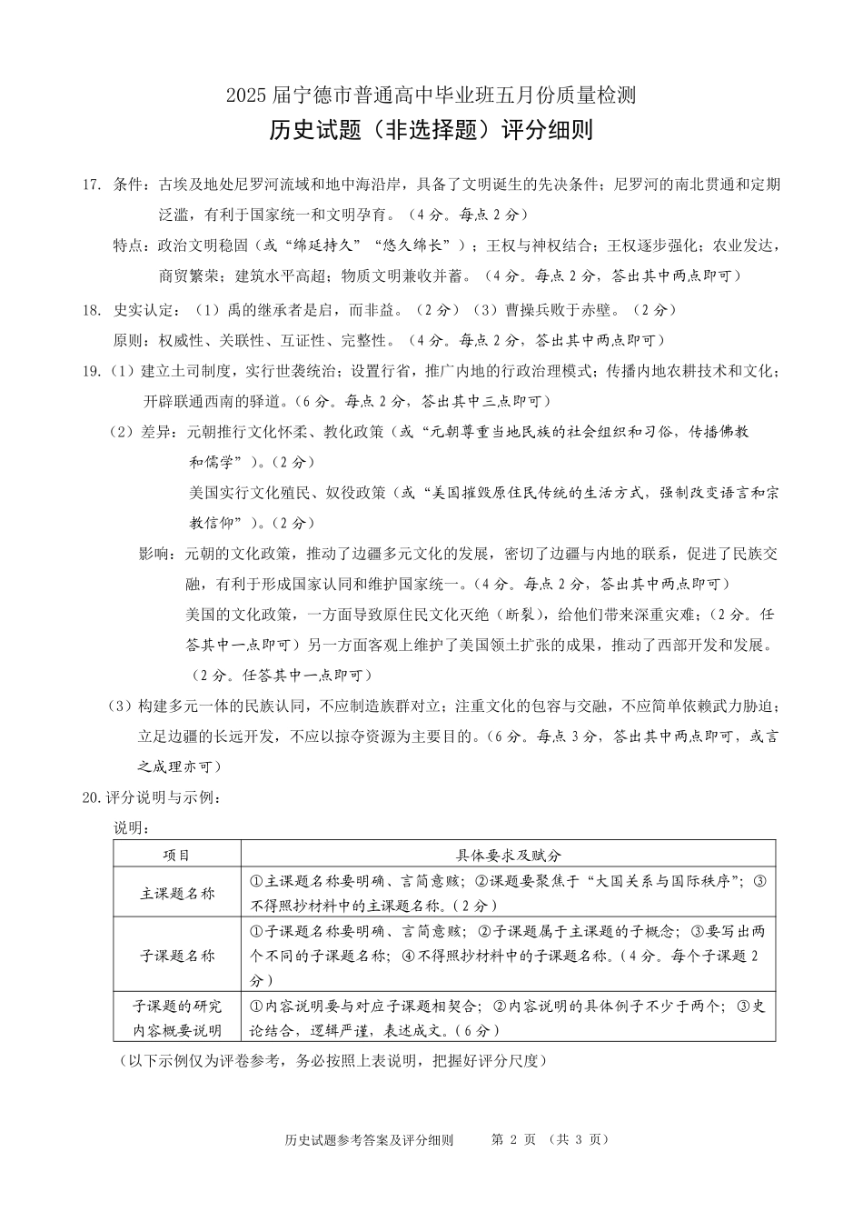 历史试卷答案福建省宁德市2025届普通高中毕业班五月质量检测(宁德四检)(5.7-5.9).pdf_第2页