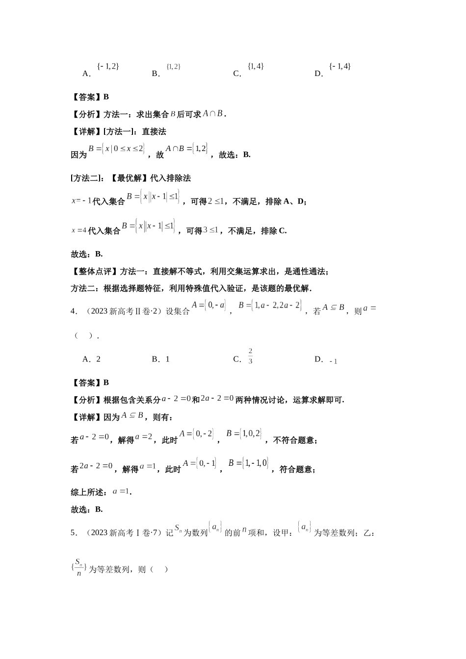 专题01集合与常用逻辑用语1.(2024新高考Ⅰ卷·1)已知集合,则()A.B.C.D.【答案】A【分析】化简集合,由交集的概念即可得解.【详解】因为,且注意到,从而.故选:A.2.(2024新高考Ⅱ卷·2)已知命题p:...