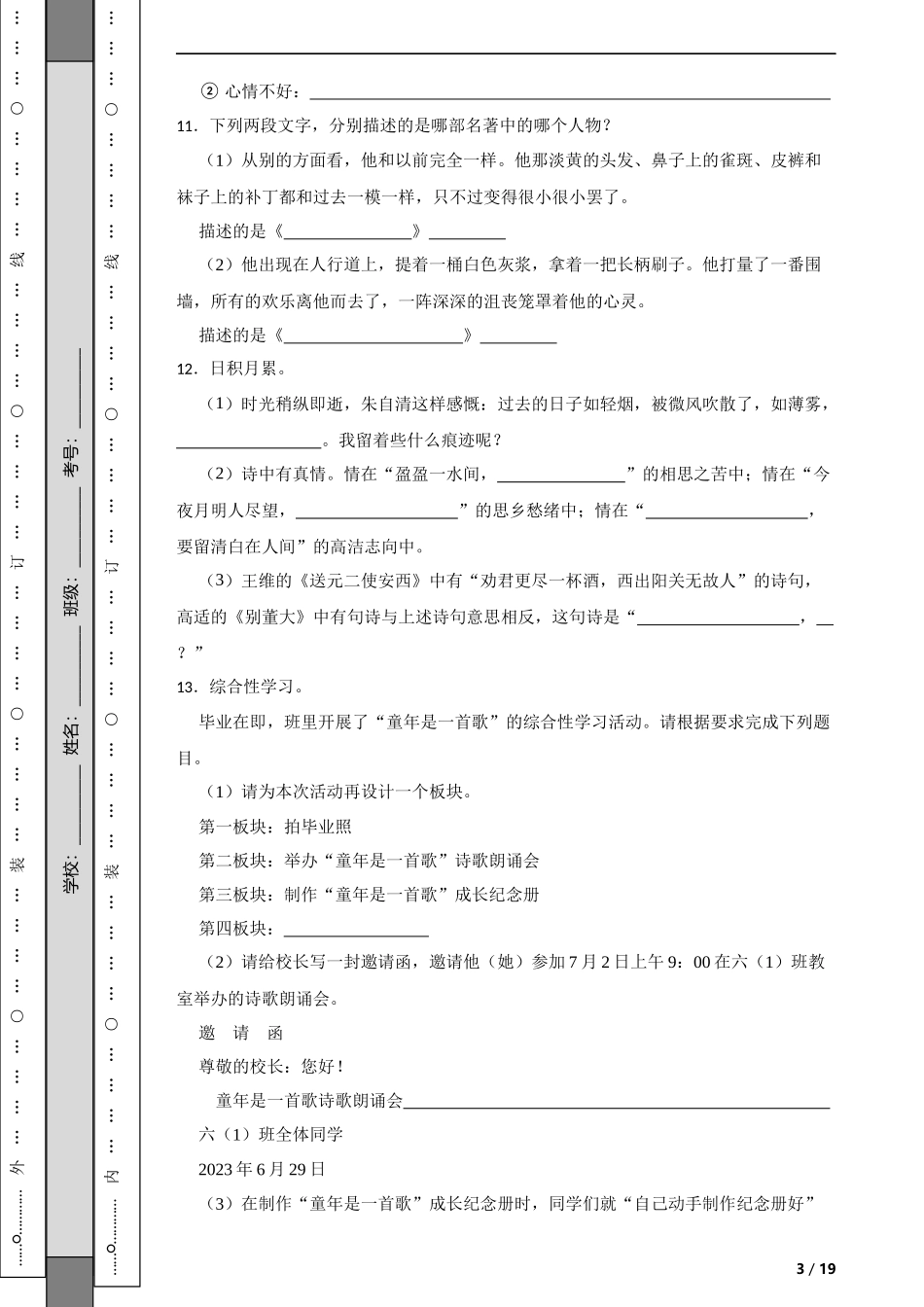 2023年湖北省潜江市小升初语文试卷 解析版.docx_第3页